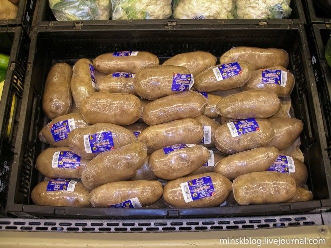 В странах бывшего СССР картошку принято покупать мешками или ведрами у бабок на рынке. С появлением крупных сетевиков появилась возможность купить мытый картофель на развес. В США же уже несколько десятилетий люди покупают картошку поштучно, каждая обернута в полиэтилен и промаркирована штрихкодом. Этот сорт называется айдахо, такую картошку дарил Джон Керри российскому коллеге Лаврову на конференции «Женева-2».