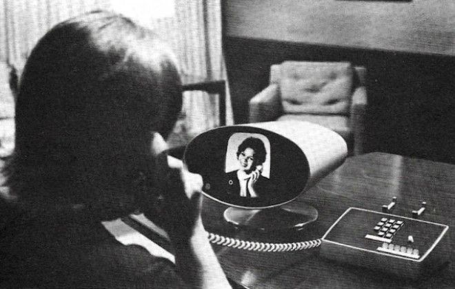 Телефон-видеофон «Bell» был впервые продемонстрирован на Международной ярмарке 1964 года в США. Но популярным он стал только спустя полвека после изобретения.