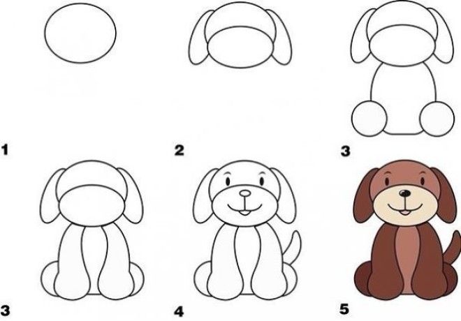 На рисунке выше вы можете видеть, как просто и быстро изобразить на листке бумаги милую собачку. В интернете вы можно найти массу подобных уроков поэтапного рисования. Естественно, есть более сложные и серьезные «картины», но уверяем — с такими детальными инструкциями вы легко повторите рисунки.