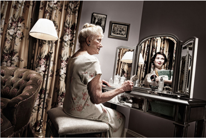 На снимках фотопроекта пожилые люди смотрят на свое отражение в зеркале и видят себя молодыми. Идея пришла Тому в голову, когда он общался с ветераном Второй мировой войны. Пожилой мужчина с ностальгией рассказывал о своей жизни и молодости. Он до сих пор чувствовал себя молодым юношей в полном расцвете сил и не понимал, как так случилось, что ему уже 80 лет.