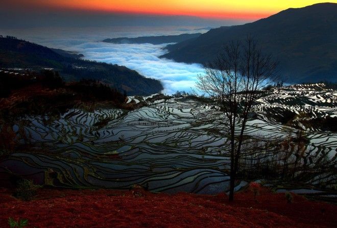 Рассвет в автономном округе Хунхэ, в юго-восточной китайской провинции Юньнань. Этот регион знаменит своими рисовыми террасами. (CHEE KEONG LIM)
