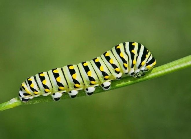 Во время развития гусеница проходит через несколько цветовых стадий – сначала она коричневая с белыми пятнами, потом у нее появляется бриллиантово-зеленый окрас, и в конце концов она становится оранжево-красной.