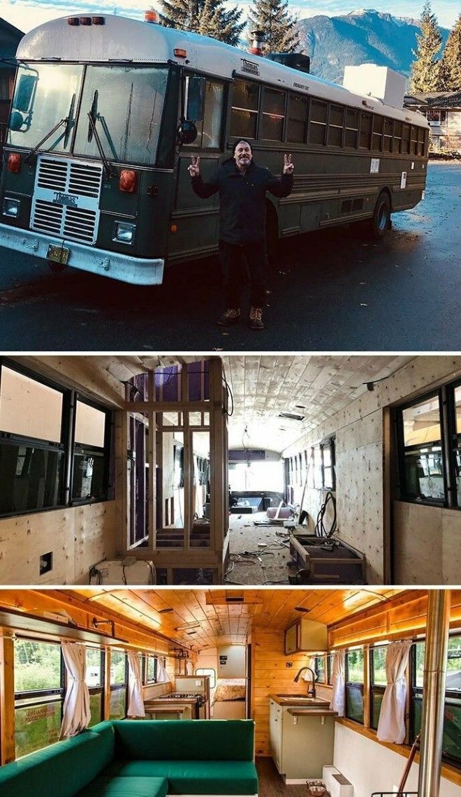 «Ну и что, что пару раз пришлось поздно лечь? Зато мой дом на колесах в бывшем автобусе готов!»