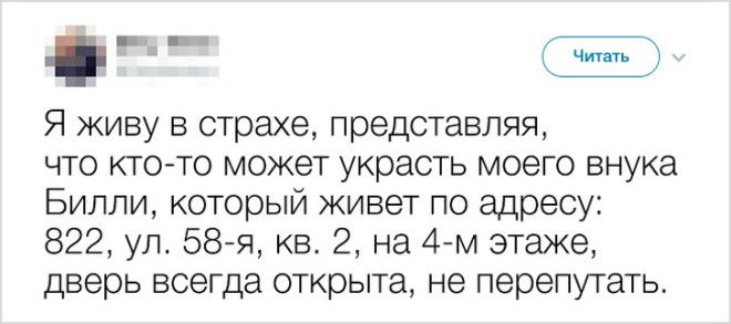 «Пожалуйста, прекратите молиться за здоровье моего деда! Вы делаете его слишком сильным. Он вырвался из больницы, и даже копы не могут его поймать: он слишком могущественный»