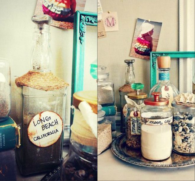 13. Можно поместить песок и ракушки в прозрачные банки.
