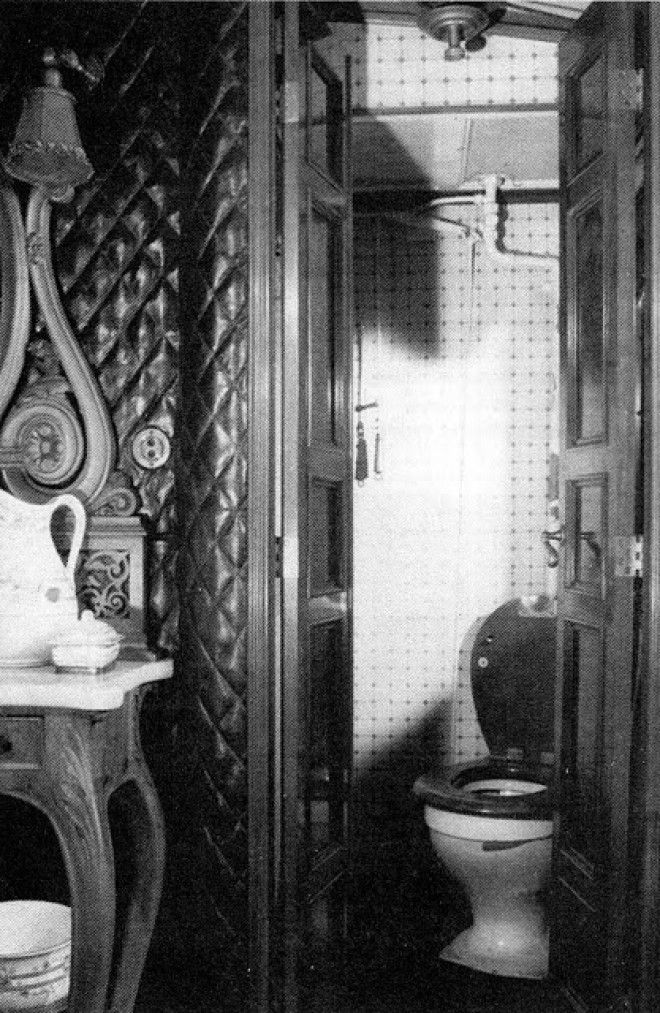 Туалет в дамском вагоне. Уровень комфорта там предусматривал особую туалетную комнату в каждом из великокняжеских купе и еще один общий туалет для фрейлин и их служанок.