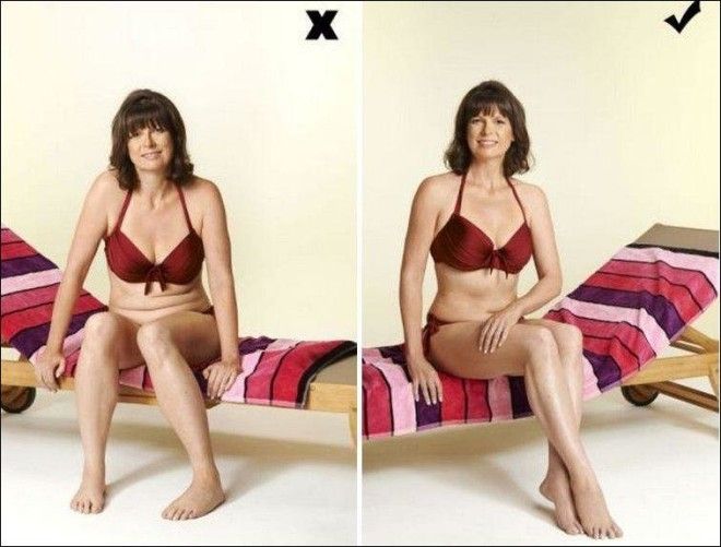 5. Во время съемки не стоит валяться на лежаке, как ламантин на лежбище. Приподнимитесь и прикройте рукой живот (даже если его у вас нет, в этой позе он вряд ли будет выглядеть аппетитно), колени держите вместе и улыбайтесь
