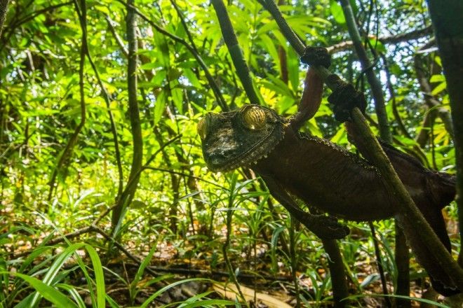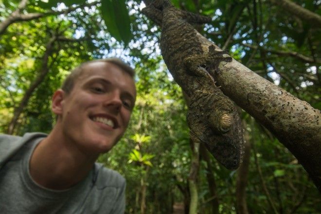 Фотограф Сэм Роули, студент факультета биологии Бристольского университета, заснял геккона во время своего путешествия на Мадагаскар. Обычно гекконы днем отдыхают на деревьях головой вниз, чтобы солнце не отражалось у них в глазах — и их не заметили хищники.