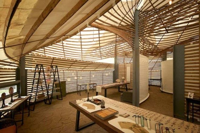 Недавно в китайской деревушке Баокси состоялась первая Международная бамбуковая архитектурная биеннале, где, как несложно догадаться, были представлены сооружения, полностью сделанные из бамбука. Организаторы фестиваля взялись доказать, что этот материал можно органично использовать при оформлении любого интерьера или экстерьера. Наверное, у них дядя на бамбуковой фабрике работает. Для участия в биеннале пригласили 12 именитых дизайнеров и архитекторов из Китая и других стран.