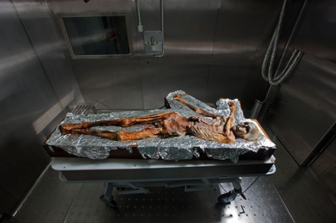 После того как мумия была доставлена в лабораторию, исследователи подняли температуру до 17,8 градуса по Цельсию, чтобы разморозить ее. Талую воду исследовали на наличие бактерий, благодаря которым древняя мумия так хорошо сохранилась.