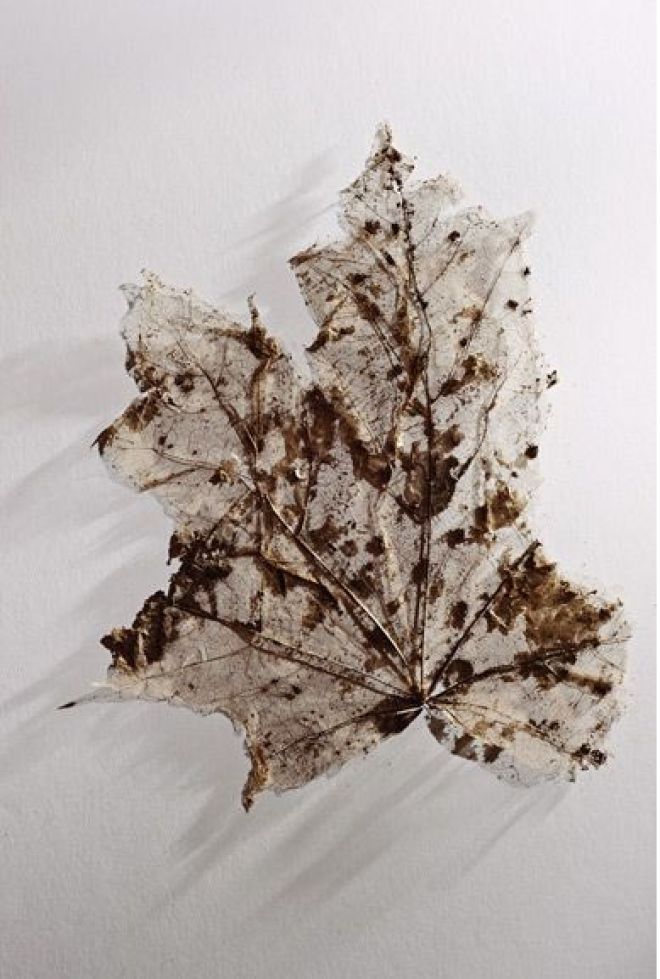 Листок клена, найденный среди снаряжения «ледяного человека». Ученые установили, что лист был сорван с дерева поздней весной.