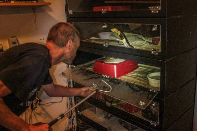 Фриде приобрел множество ядовитых змей и расположил их в специально оборудованном для этих целей подвальном помещении своего дома. Мужчина не комментирует то, как ему удалось провернуть это в стране, где существует строгий контроль над опасными тварями и многие животные просто запрещены к содержанию частными лицами.
