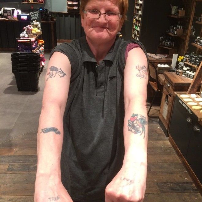Эта пожилая женщина когда-то занималась боксом. Недавно она пришла в тату-салон, чтобы перекрыть свои старые татуировки, но мастер посоветовал ей сделать новые, а эти хранить как память