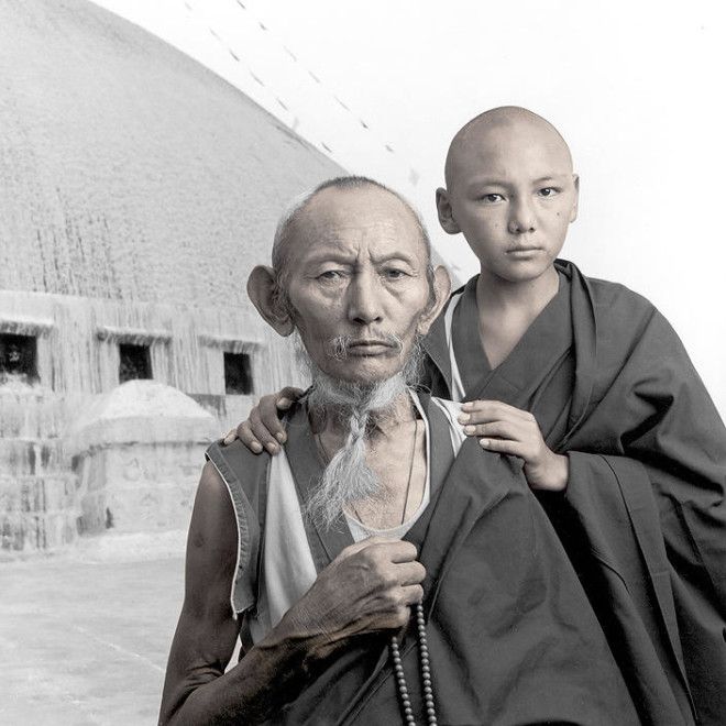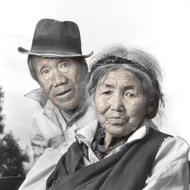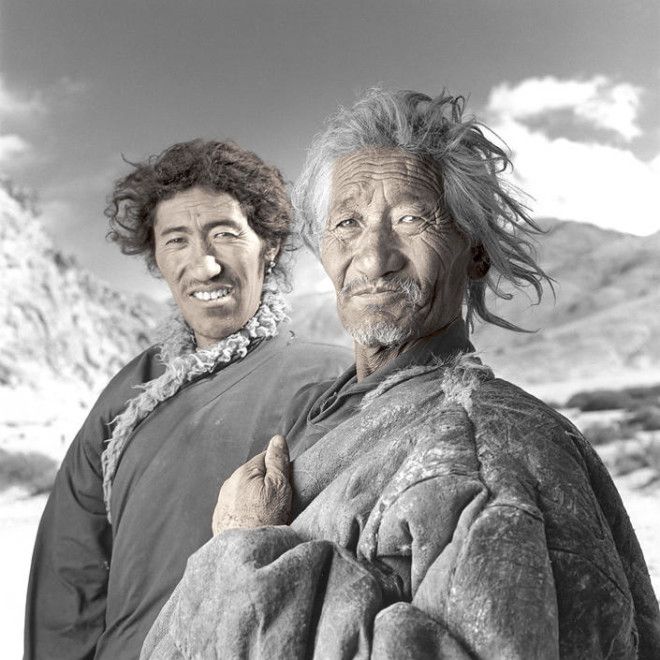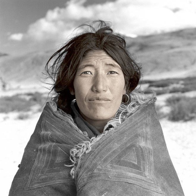 Джигме и Сонам — сестры из семьи кочевников, которая только что спустилась с Гималаев в свой зимний лагерь, расположенный на Тибетском плато на высоте 5000 м над уровнем моря. Когда я показал Джигме ее портрет на поляроидном снимке, она вскрикнула и убежала в шатер. Я понял, что она впервые видела себя со стороны, потому что в ее семье нет зеркала.