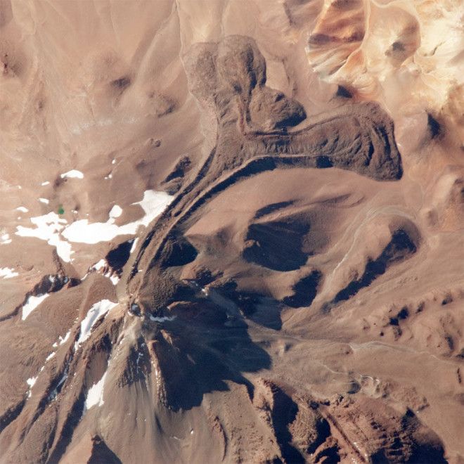 1. Три детских мумии были обнаружены на вершине вулкана Льюльяйльяко, расположенного на границе Аргентины и Чили. Вершина вулкана находится на высоте 6 739 м над уровнем моря, а температура здесь достаточно низкая, чтобы тела сохранились, превратившись в мумии. Как считают ученые, этих детей принесли в жертву вулкану около 500 лет назад. На фото: Тот самый вулкан Льюльяйльяко, на вершине которого были обнаружены мумии детей.