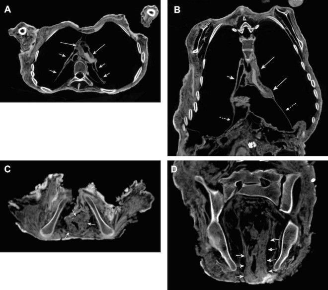 16. Снимки также показали признаки уплотненной стенки сердца и раздутый кишечник. Скорее всего, это было вызвано болезнью Шагаса.