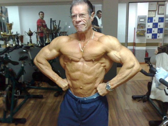 Парни и девушки боялись, как бы старики ничего себе не повредили и, когда Рафаэль начал поднимать штангу, просто затаили дыхание. Настоящий шок на их лицах можно разглядеть на 3 минуте видео. Мужчина снял с себя спортивный костюм и продемонстрировал свою настоящую фигуру.