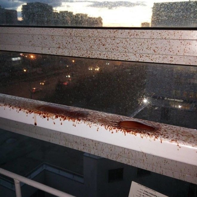 Да, это кровь… Жуткая картина. Но, к счастью, никто не пострадал! Конечно, кроме куска мяса, оставленного соседями размораживаться на балконе и тех людей, которым пришлось это отмывать.
