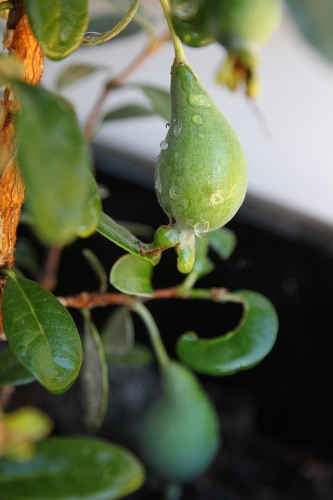 Семечки этого экзотического растения следует отобрать из спелого и мягкого плода. Если купленная фейхоа еще не дозрела, ее можно положить в теплое место и подождать несколько дней. Семена следует промыть от мякоти и просушить. Не закапывая глубоко, кладем семечки в землю с песком.