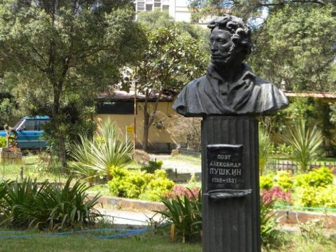 7. Все знают, что предок Пушкина был родом из Эфиопии. Но мало кому известно, что в далекой африканской стране это помнят и гордятся своим земляком. В Аддис-Абебе даже установлен памятник Пушкину, возле которого всегда лежат живые цветы.