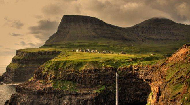 Скандинавы вообще любят забираться подальше, чтобы вести там обособленную жизнь. На скалах Фарерских островов община из 16 человек взяла и построила себе собственную деревню. Попасть сюда очень непросто: до сквозного тоннеля, ведущего к деревни, путешественнику потребуется подняться еще на полкилометра ввысь.