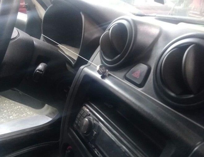 Как вы думаете — что означает эта гайка на леске в салоне автомобиля? Сразу подсказываем — это не противоугонная система и не ручной привод дворников. Сдаетесь? Все просто — это система, защищающая номера от камер наблюдения во время движения.