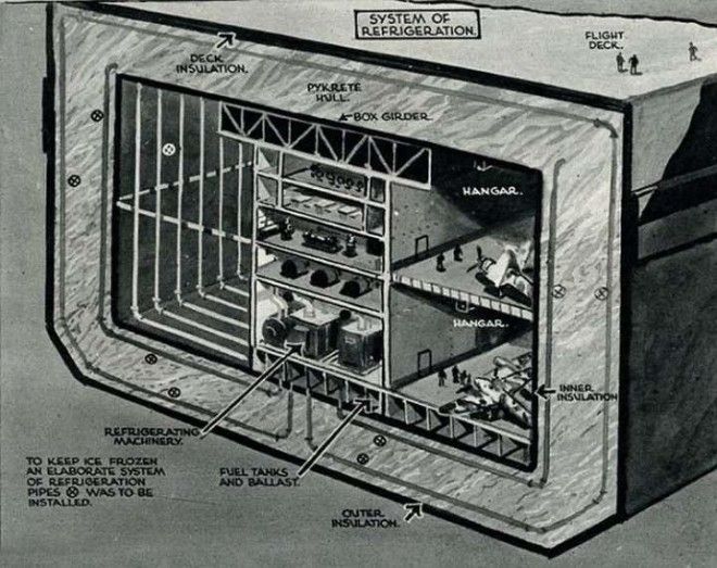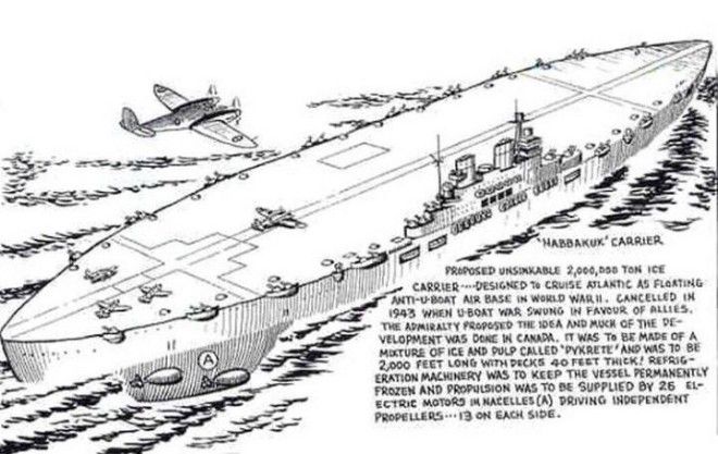 Это действительно один из самых странных и невероятных проектов в военной истории. Ледяной корабль, проект которого был предложен гением-изобретателем, находившимся в психиатрической лечебнице, должен был помочь Британие в её крайне непростом положении в годы Второй мировой войны.