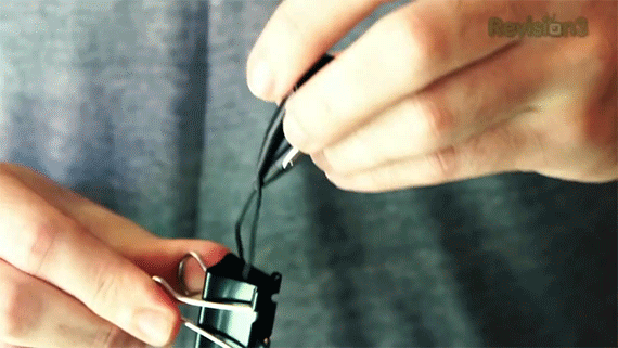 17.Чтобы провода наушников не перепутывались, намотайте их на зажим для бумаги.