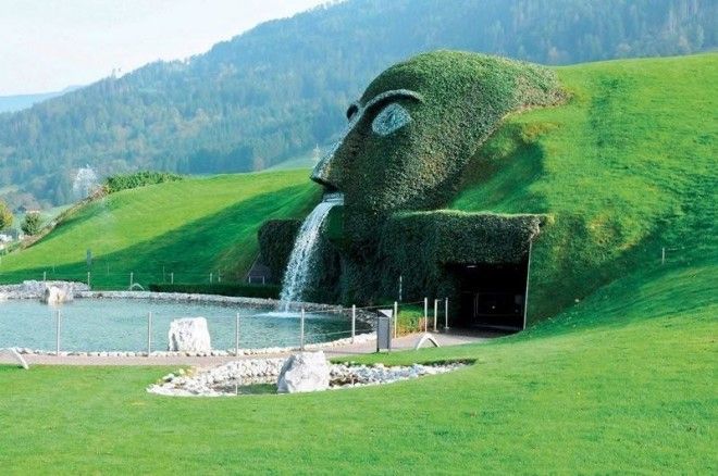 Зеленая голова Альпийского великана охраняет вход музея «Хрустальные миры Сваровски». Музей расположен под этим холмом и имеет семь выставочных залов. Но кристаллы Сваровски не только внутри музея, они инкрустированы в глаза «хранителя», пылают зеленым светом. Из рта его течет вода, которую вечером подсвечивают так, что создается впечатление, что она хрустальная.