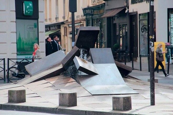 Вдохновленный видами реки Святого Лаврентия (Канада) французский скульптор Шарль Додлен создал необычный фонтан из бронзы. Плиты тротуара торчат эмитируя ледяные глыбы реки.
