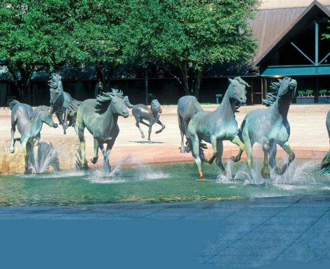 Изваяние лошадей из бронзы, которые образуют бегущий табун, считают самой большой групповой скульптурой лошадей в мире. Они являются символом свободы, настойчивости, целеустремленности техасского народа. Брызги фонтана бьют таким образом, будто мустанги копытами разбивают воду, по которой бегут. Это творение также получило премию Американского общества ландшафтных архитекторов.