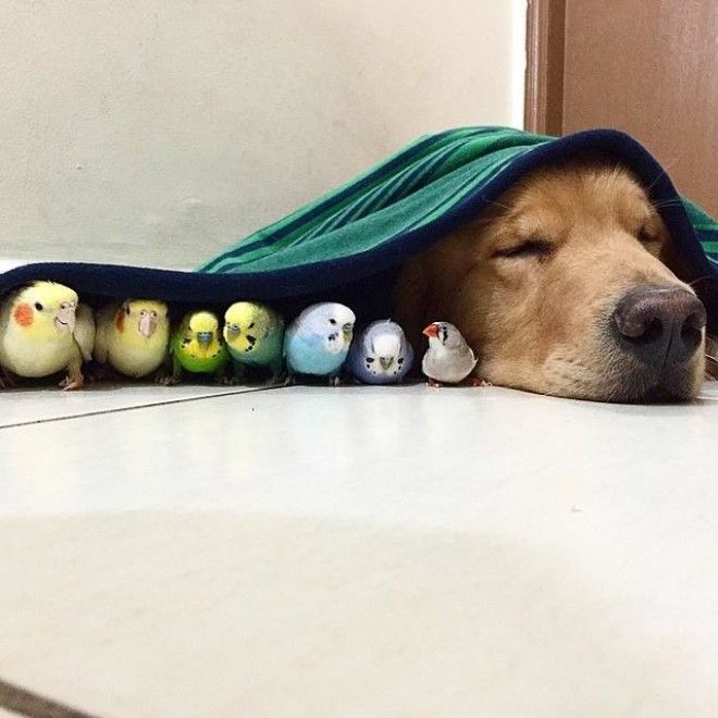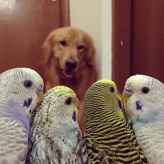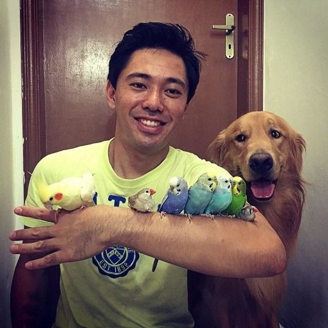Вместе с ними живут хомяк и целая стая из восьми птиц. Они прекрасно уживаются все вместе. А после того, как хозяин выложил их фотографии в интернет, эти верные друзья прославились на весь мир. Все просто влюбились в них: