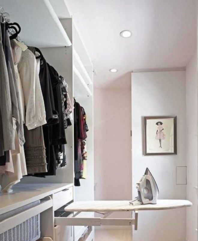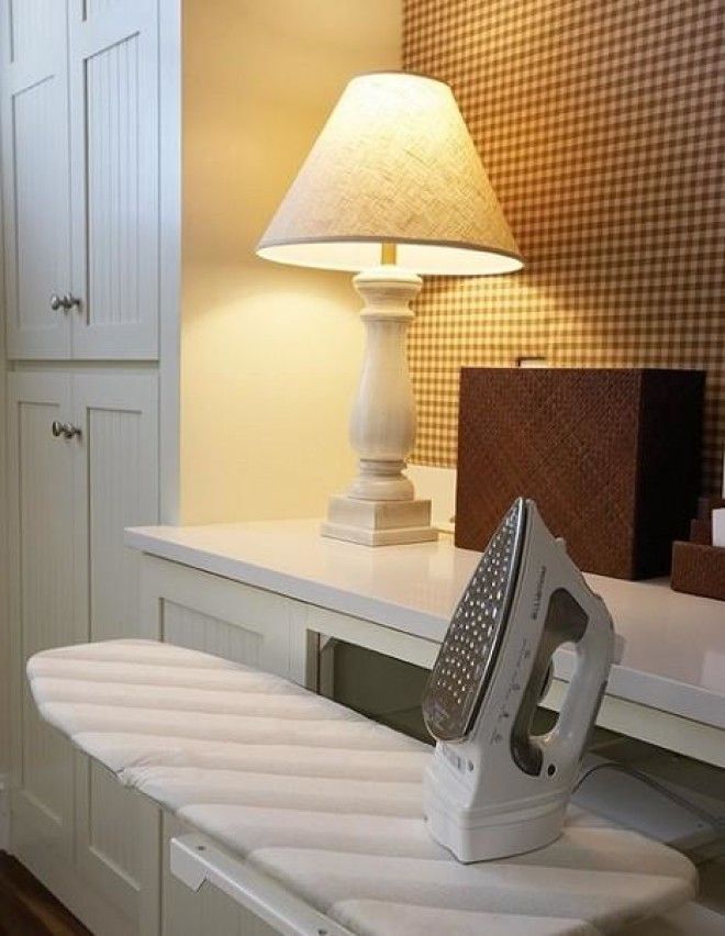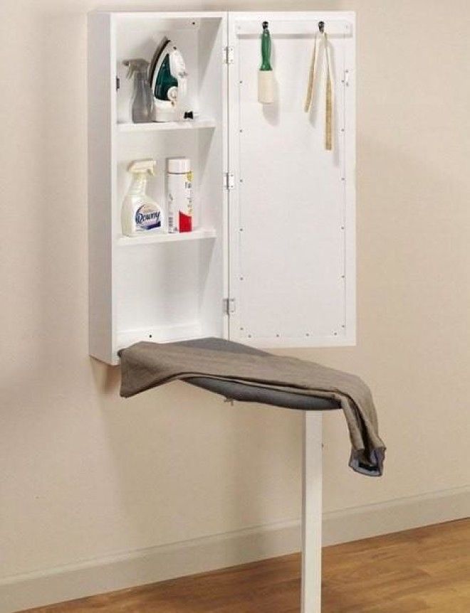 Небольшие размеры гладильной доски не только помогают ее надежно спрятать, но и экономят пространство в комнате.