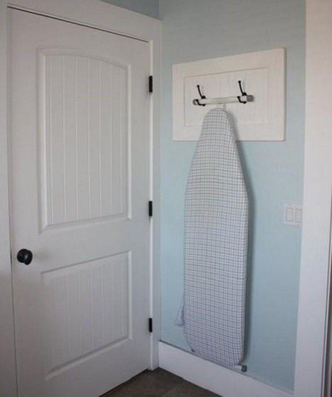 Место за дверью или на стене используется крайне редко, однако это совершенно не мешает повесить туда доску. Такой вариант не только сэкономит пространство, но и позволит спрятать гладильную доску так, чтобы она не мешала тебе и твоим домашним передвигаться по квартире.