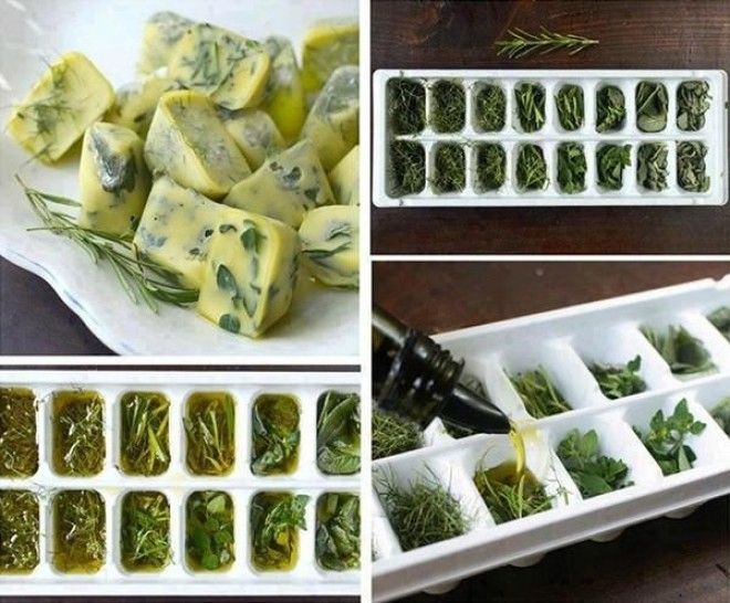 17. Желтеющая зелень — ценный продукт, не спешите ее выбрасывать. Мелко нарежьте зелень и смешайте с оливковым маслом. Залейте смесью формочки для льда и отправьте их морозилку. Чудесная заправка для салатов, соусов и супов!