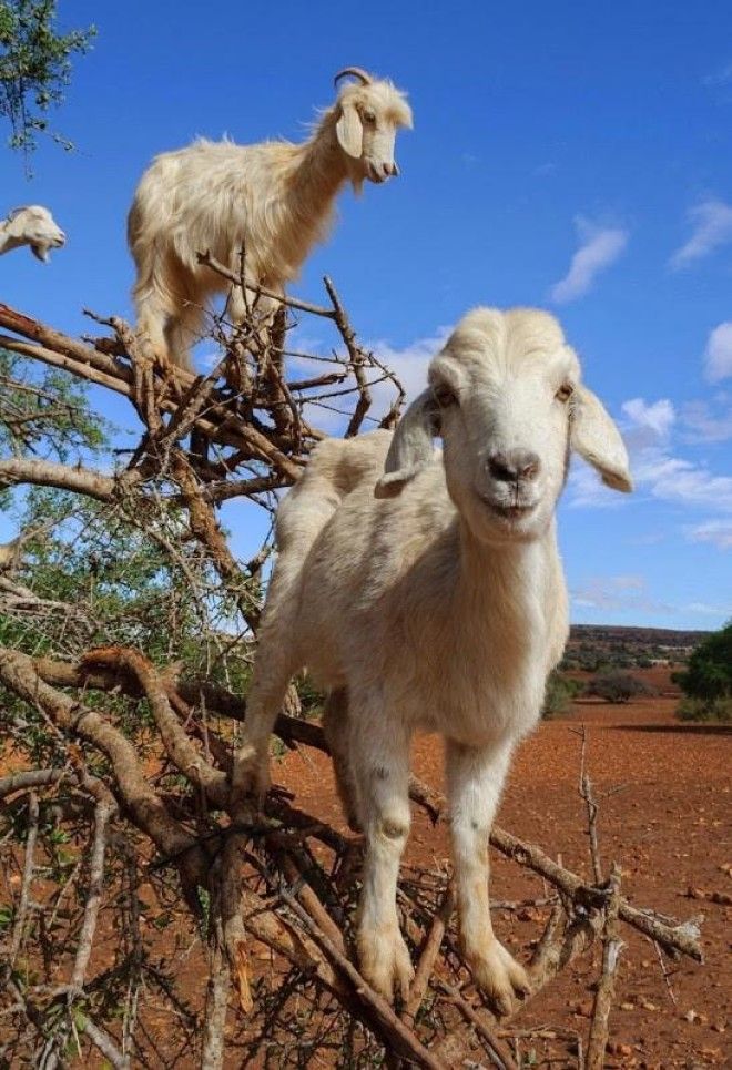 Как оказалось, эти животные — весьма опытные альпинисты и известны своим невероятным умением ловко взбираться на деревья и очень крутые скалы в поисках пищи, которую довольно сложно найти на земле в этом засушливом регионе.