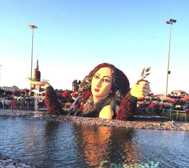 Дубайский Чудо Сад уникален еще и тем, что он был по существу построен в голой безводной пустыне. Ландшафтный дизайнер сада Акар говорит, что этот поразительный яркий сад является прекрасным примером того, как можно озеленить пустыню путем повторного использования сточных вод.