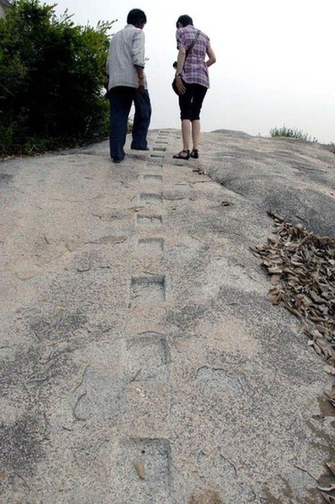 На поверхности массива имеются вот такие прямоугольные выемки в породе