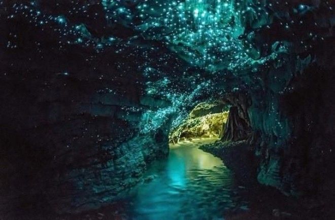 Светлячки в пещере в Новой Зеландии