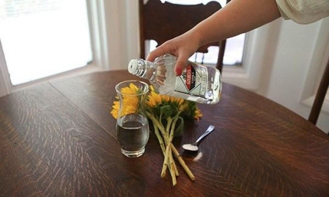 Срезанные цветы останутся свежими дольше, если Вы добавите пару капель водки и 1 ч. л. сахара к воде, в которой они стоят. Не забывайте каждый день менять воду и проделывать то же самое.