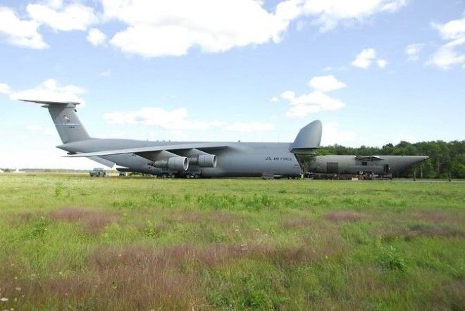 Транспортировка фюзеляжа C-130 Hercules с помощью военно-транспортного самолета повышенной грузоподъемности Lockheed C-5 Galaxy С-5 потребовала от военных более двух лет планирования и испытаний.