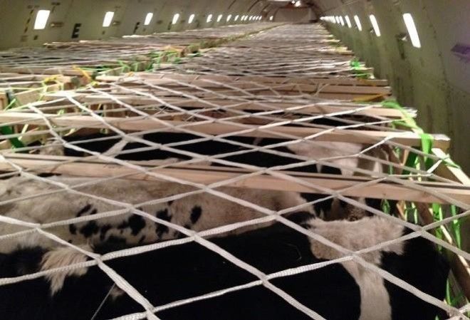 Крупный рогатый скот тоже иногда нуждается в авиаперевозках. Пилоты Boeing 747, однажды перевозившие 390 коров над Ирландским морем, были напуганы сработавшей пожарной сигнализацией.
