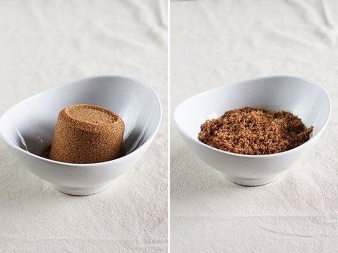 В спешке велик риск передержать коричневый сахар, после чего он превращается в окаменелость, с которой сложно что-либо сделать. Если это произошло, положите его в миску с ломтиком хлеба, сбрызните водой и поставьте на 30-45 секунд в микроволновую печь.