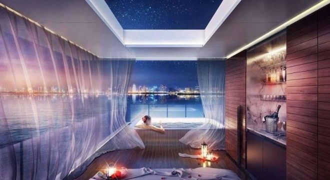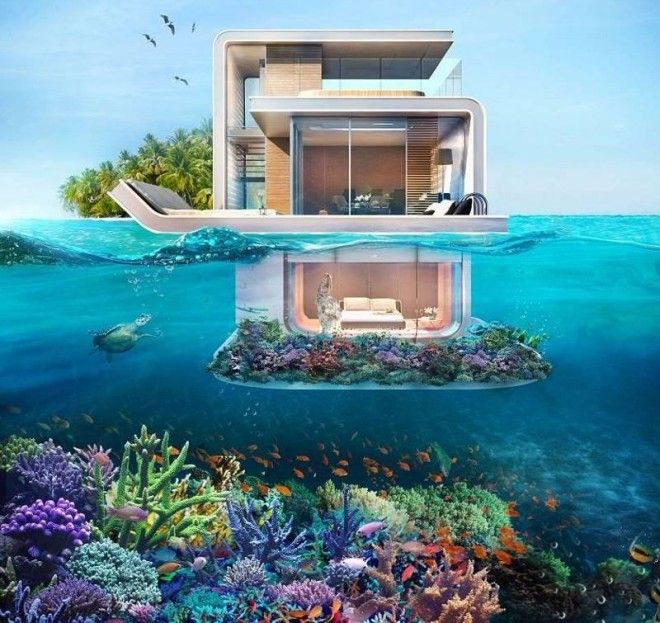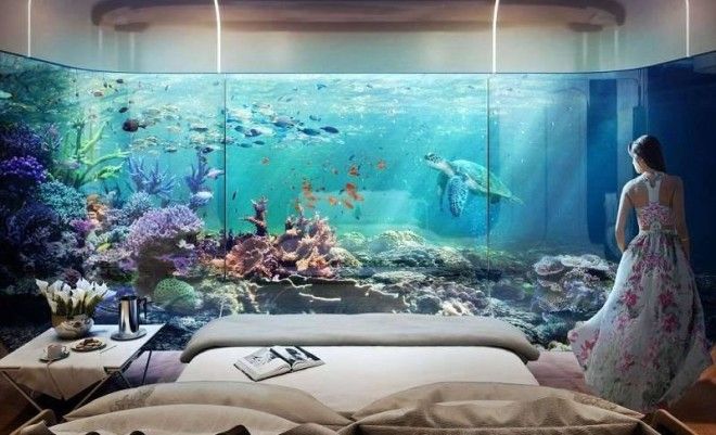 На подводном уровне с прозрачными стенами будет находиться спальня с ванной, позволив людям отдыхать в окружении морских пейзажей