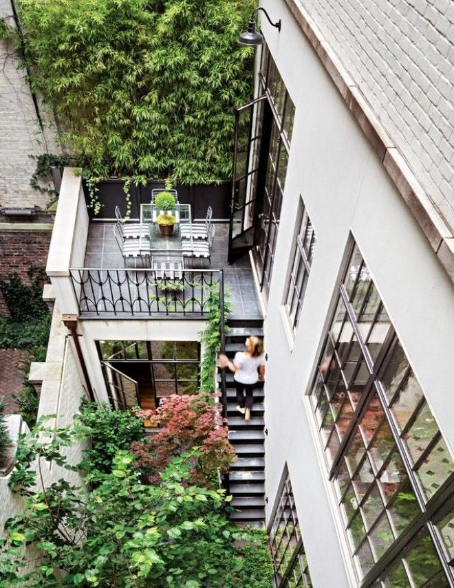 3. Здесь небольшой балкончик таунхауса в Верхнем Ист-Сайде от дизайнера Риса Робертса (Rees Roberts) выходит во внутренний двор, утопающий в пышной растительности.