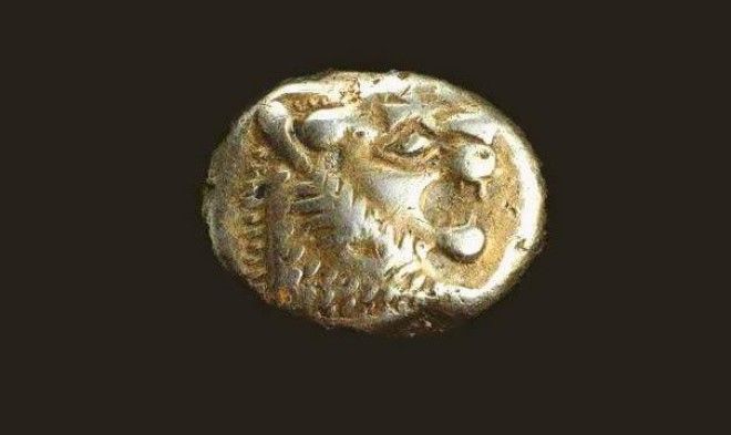 Эта монетка была найдена в древнем Эфесе, Турция. Она была украшена головой льва.