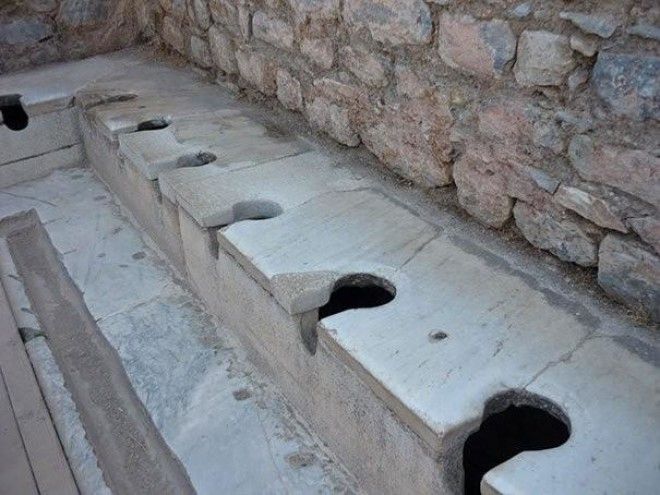 В Эфесе, древнем городе Турции, были туалеты со сливом. Проточная вода, относила отходы в соседнюю реку.