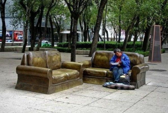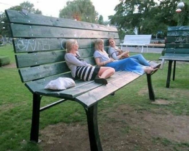 Скамейки люди любят по всему миру, ведь на них можно и сидеть, и спать, а в последнее время они часто используются даже как носитель рекламы.