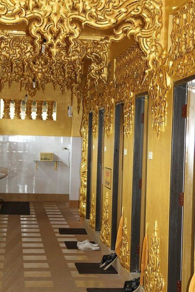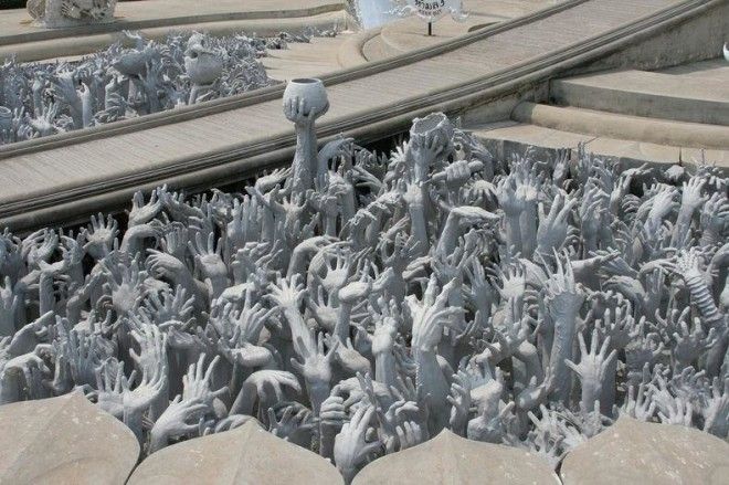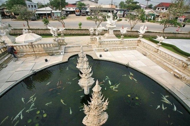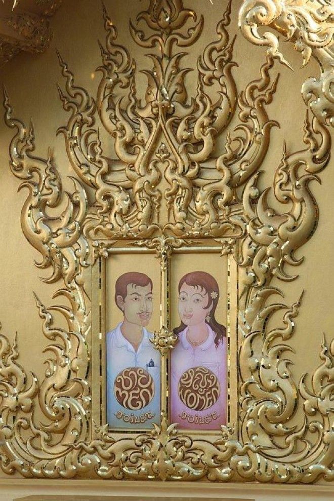 На территории комплекса размещены пока три здания это сам белый храм, картинная галерея, а третье здание не менее примечательное, чем Белых храм, оно золотистого цвета, словно королевские палаты и является как ни странно общественным туалетом.