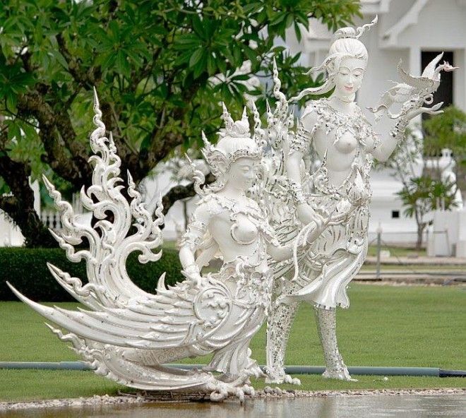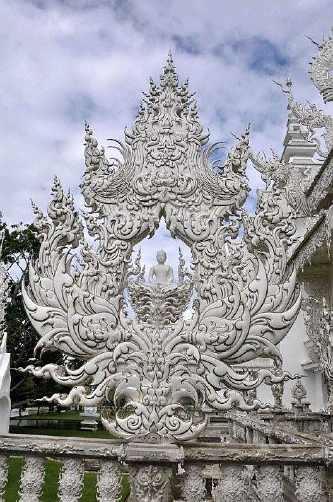 Белый храм является главным зданием храмового комплекса, он окрашен в белый цвет и покрыт мозаикой из зеркал и символизирует чистоту Будды, по замыслу автора храм является символом Рая.